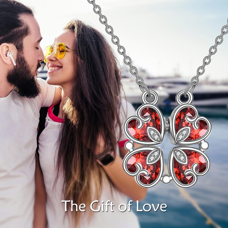 - ❤YFN Design❤: Unlock the power of love and luck with our convertible pendant necklace inspired by the four-leaf clover, symbolizing faith, love, hope, and luck. Our necklace features a magnetic folding heart design that can be opened or closed on both sides, offering two ways to wear it. The four hearts combine to form a four-leaf clover or spread out to create a love-shape necklace.