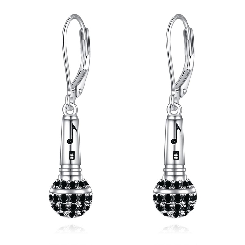 YFN Microphone Earrings Sterling Silver Sing Dangle Drop Leverback Earrings Jewellery Music Lover Singing Gifts for Women Girls Men