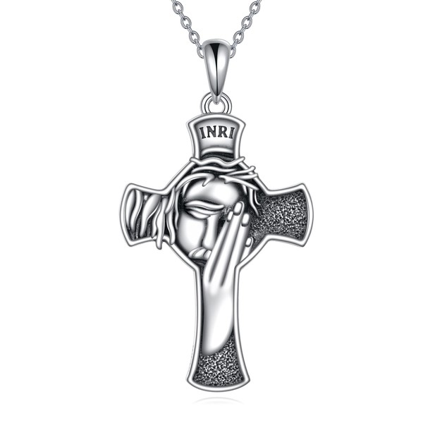 YFN Prayer Necklace Sterling Silver Jesus Pray For Us Pendant Necklace Religious Jewelry For Women Men Christian Gifts For Mom Daughter