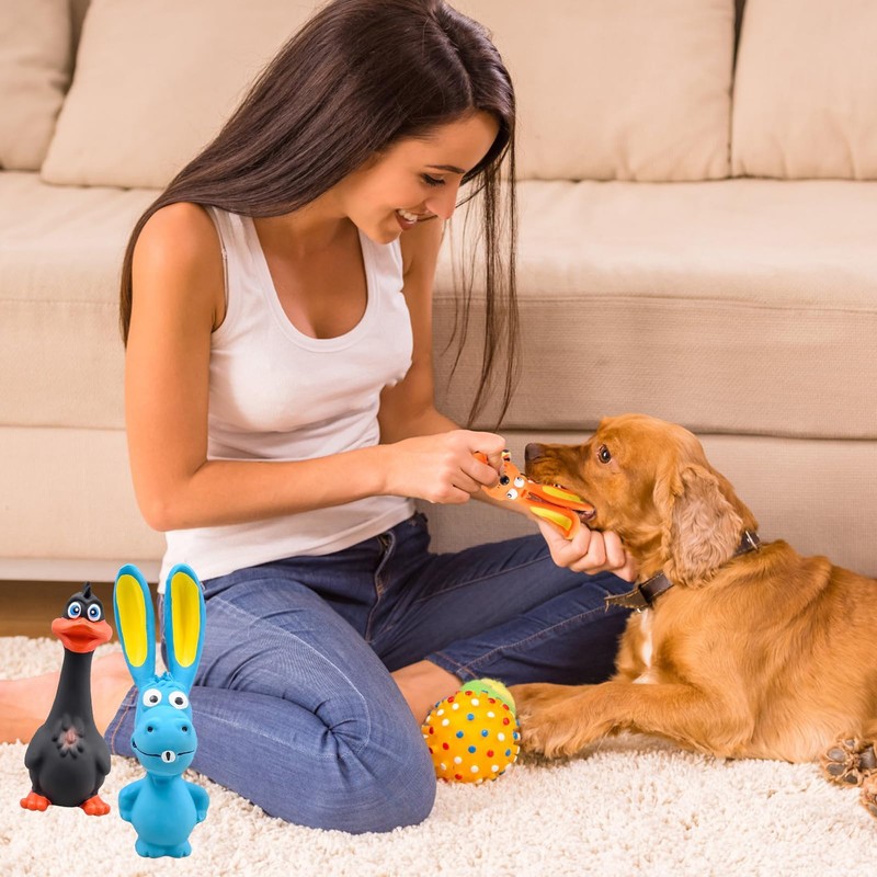 - Safe Material: Our 7 inch interactive latex dog toys are made of high quality latex material, safe, reliable, non-toxic, soft, durable and elastic, pet dog friendly, helps to clean teeth while chewing and playing.