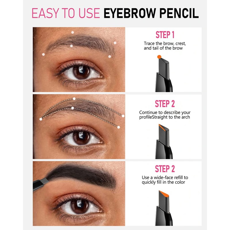 ✔Easy to Use:Our eyebrow pencil is loved by both beginners and professionals for its ease of use. The mechanical and retractable design features a 0.5mm tip that expertly draws tiny brow hairs and fills in sparse areas and gaps