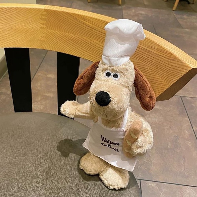 - Chef dog plush toy: this cute dog plush toy it wears a small chef hat and a cooking apron, with bread in hand, a beautiful doll for children to love