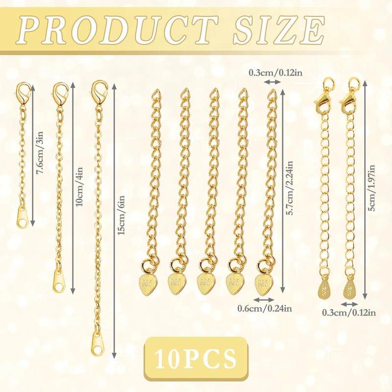 - Premium Quality Material: Made from 18k gold-plated metal for a luxurious and durable finish. These necklace extenders are designed to provide long-lasting shine and strength
