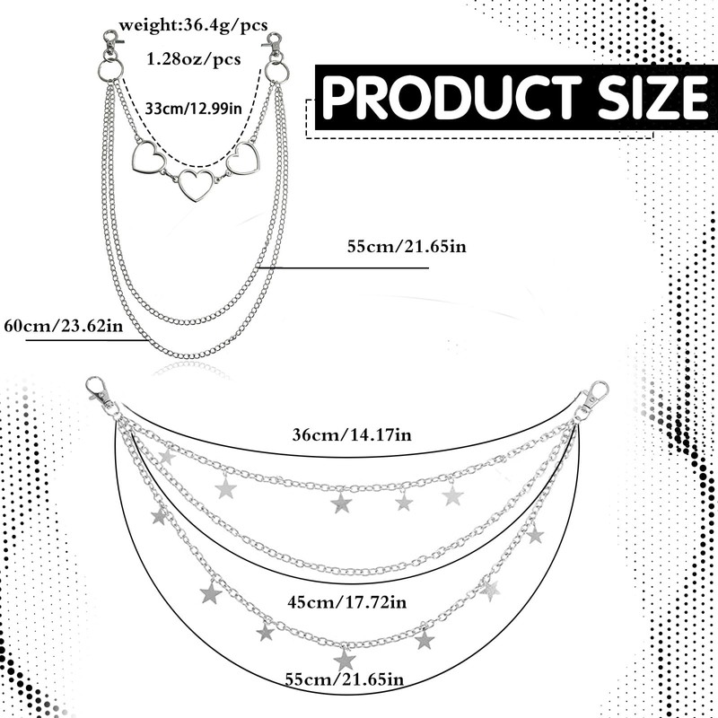 - Variety Styles: 2 Pants Chains, Stars and Hearts, which is perfect for complementing your everyday outfits.