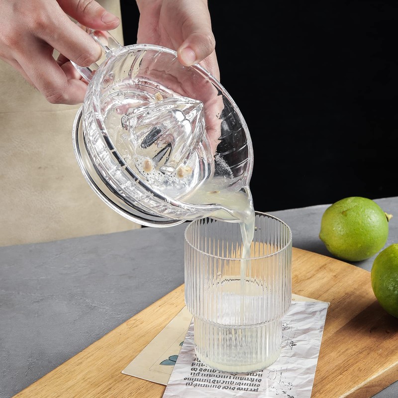 - Crystal Glass Design: This lemon squeezer is designed with a handle and pour spout for easy use. Plus, the pour spout design and durable construction make this citrus squeezer an essential kitchen tool in your daily life.