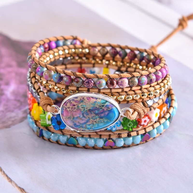 YGLINE Natural Stone Wrap Bracelets for Women Healing Crystal Beaded Bracelet(Jasper)