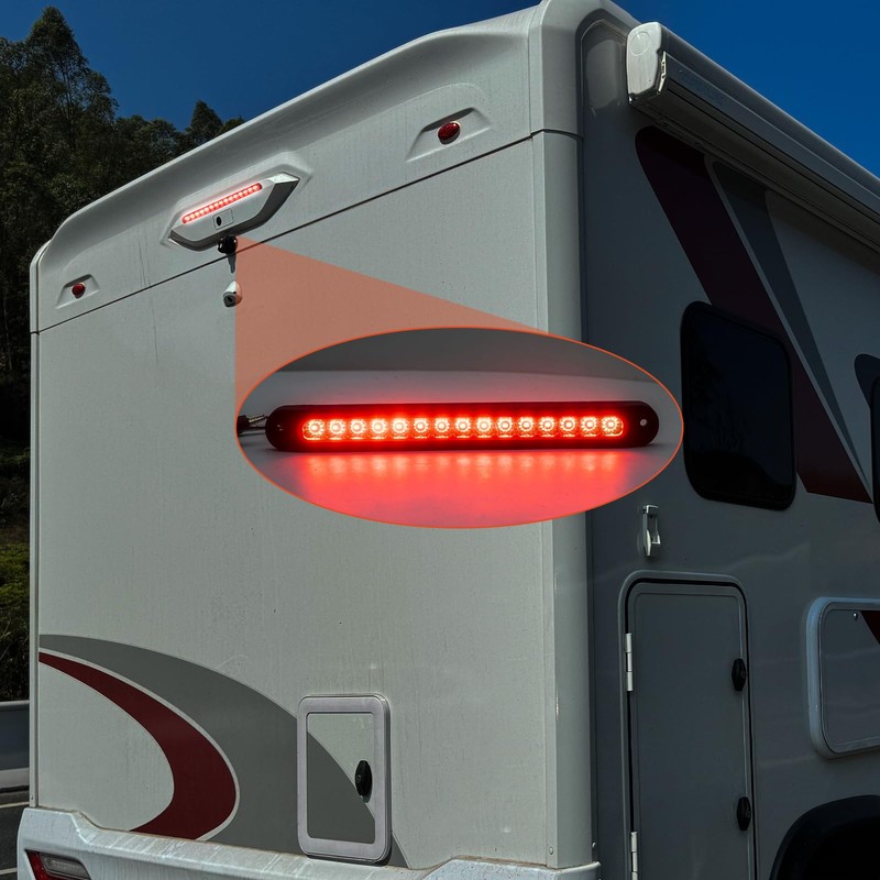 - ️【Universal Application】This is a universal high mount central brake light and can be mounted on just about any 12V vehicle.The light is commonly found on ATVs, trucks, RVs, barrel covers, truck caps and trailers.