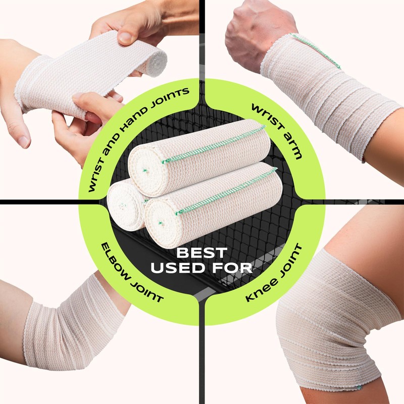 - 【Prevention & Relief】Elastic bandage wrap provide strong support for ankles, wrists,elbows, legs and knees. Elastic bandages help prevent and relieve body aches, sprains, strains and swelling. Compression bandage are your outdoor protector.