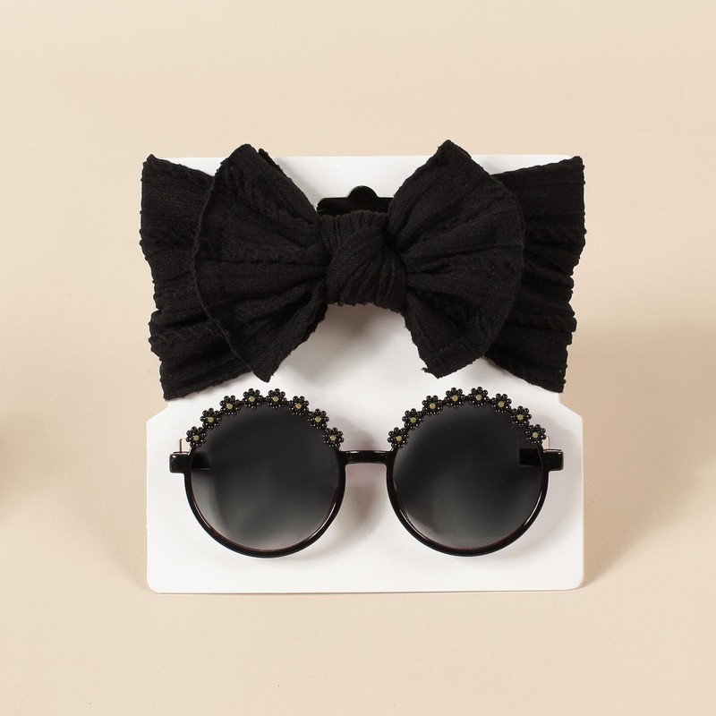 Yheahin Baby Girls Nylon Bows Headband and Sunglasses Set Cute Hair Bow Headwrap Kid Daisy Flower Sunglasses Party Shower Hair Accessories for Newborn Toddler Infant (Black, Standard)
