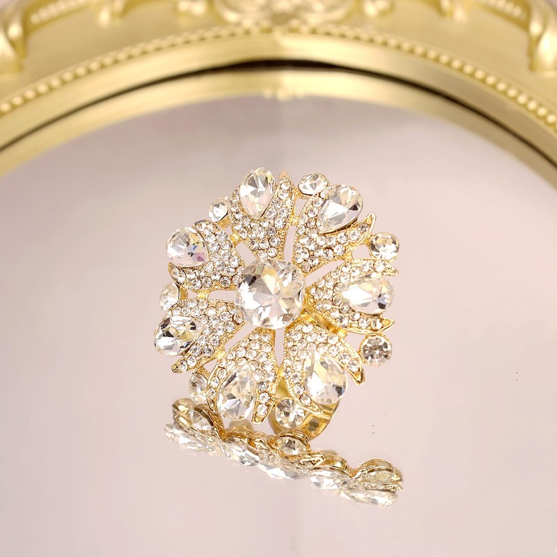 Yheahin Elegant Big Crystal Ring for Women Gold Stacking Pearl Rhinestone Flower Rings Open Finger Adjustable Crystal Statement Ring Jewelry for Bridal Wedding (Crystal 4)