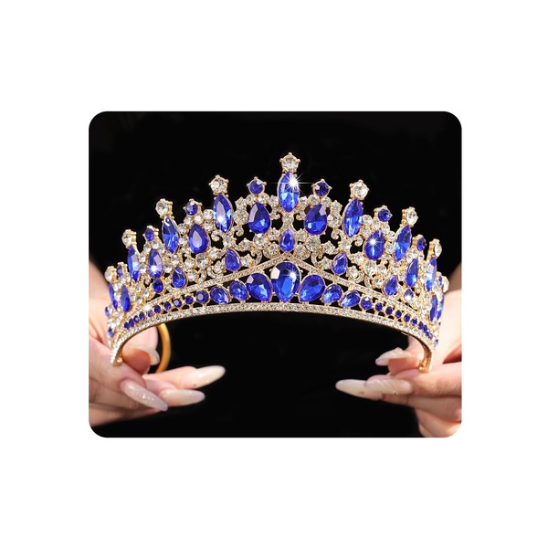 Yheahin Sparkle Crystal Crown and Tiara for Women Bridal Wedding Rhinestone Tiara Princess Queen Crown Tiara Headpieces for Cosplay Costume Birthday Party (Blue)