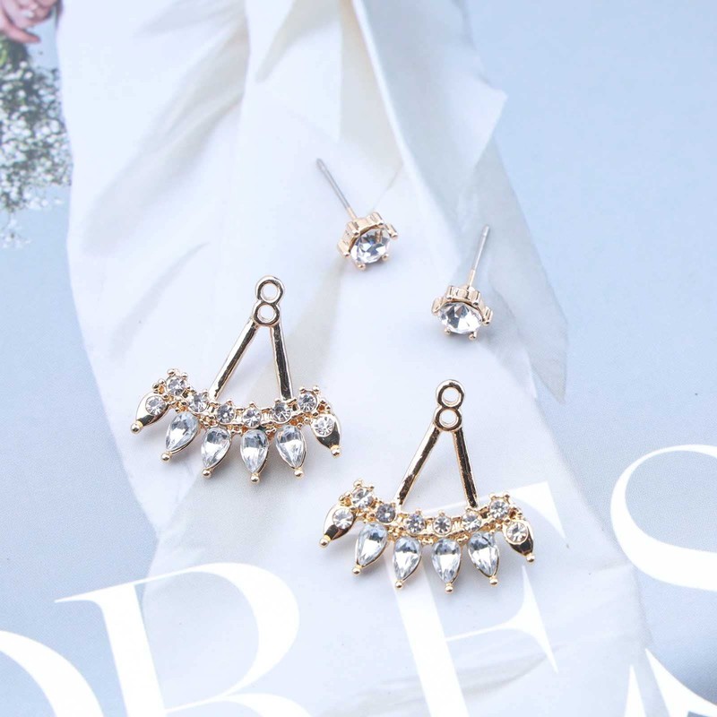 Yheakne Boho Crystal Ear Jackets Earrings Gold Rhinestone Stud Earrings CZ Teardrop Crystal Earrings Sparkling Front Back Earrings Jewellery for Women and Girls (Gold), Crystal