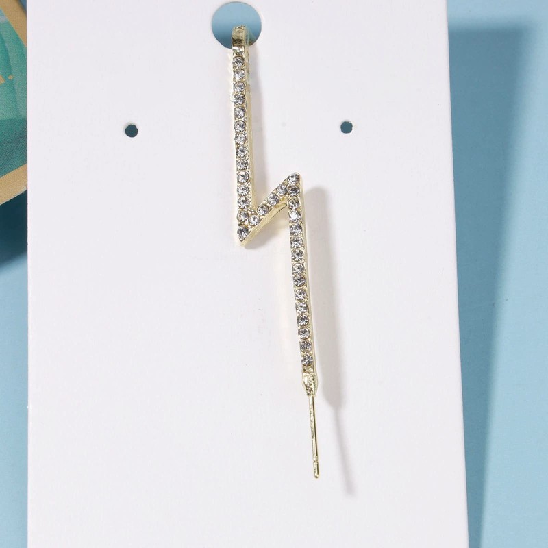 Yheakne Boho Lighting Stud Ear Pin Earring Gold CZ Edgy Pin Hook Cuff Earrings Long Thunder Ear Cuff Ear Wrap Earring Rhinestone Mountaineering Earrings Slanted Edgy Ear Pin Earring (Gold)