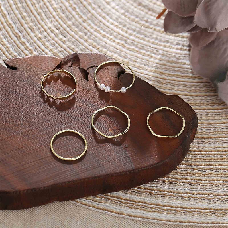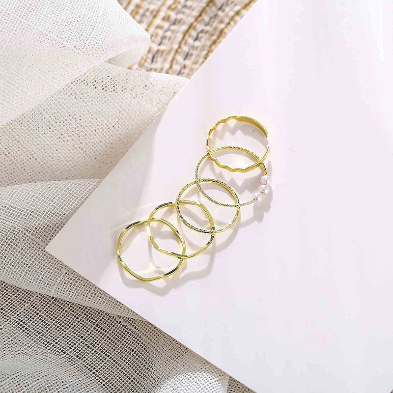 Yheakne Boho Stacking and Midi Gold Pearl Finger Rings Set - Carved Joint and...