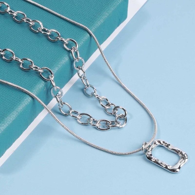 - Silver rectangular necklace chain made of high-quality alloy, easy to match clothing.