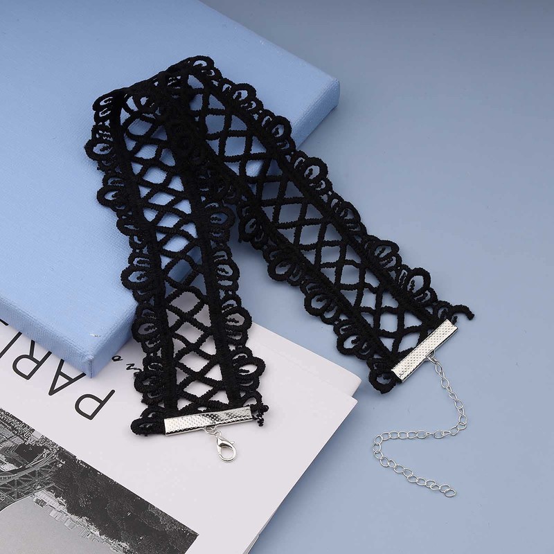 - Black Lace Chain Necklace made of high quality lace and alloy,easy to match clothes. Plain Lace Necklace chain is black with Real Images,keep color and not fade.
