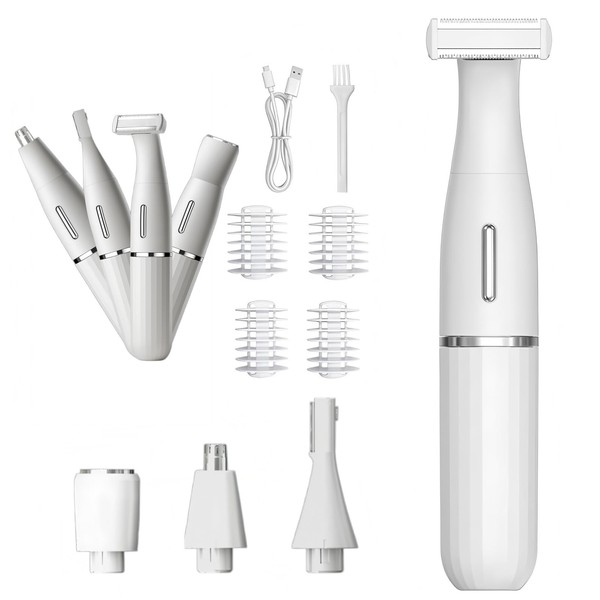 Yhfesh 4 in1 プレミアム電動シェーバー 女性用フルボディケアシステム vio 多機能 顔 脇 腕 産毛 背中 足 すね毛 ムダ毛処理 全身用 痛くない 完全防水 水洗い可能 ドライ&ウェット両用 軽量 USB充電式 急速充電 低騒音 ビキニライン デリケートゾーン ドライ剃り 鼻毛カッター 眉毛シェーバー ボディシェーバー フェイスシェーバー お風呂剃り 男女兼用 メンズ(ホワイト)