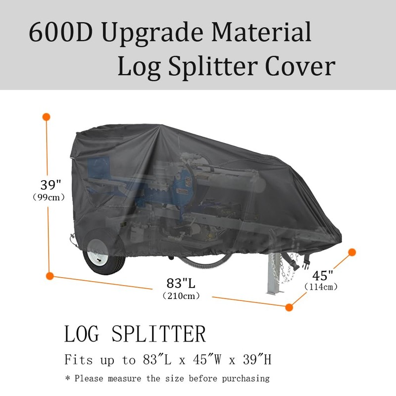 YHINGG Log Splitter Cover Waterproof 600D Oxford Cloth 83" x 45" x 39" Suitable for 15-45 ton Gas or Electric Log splitters Weather-Resistant Wood Splitter Cover