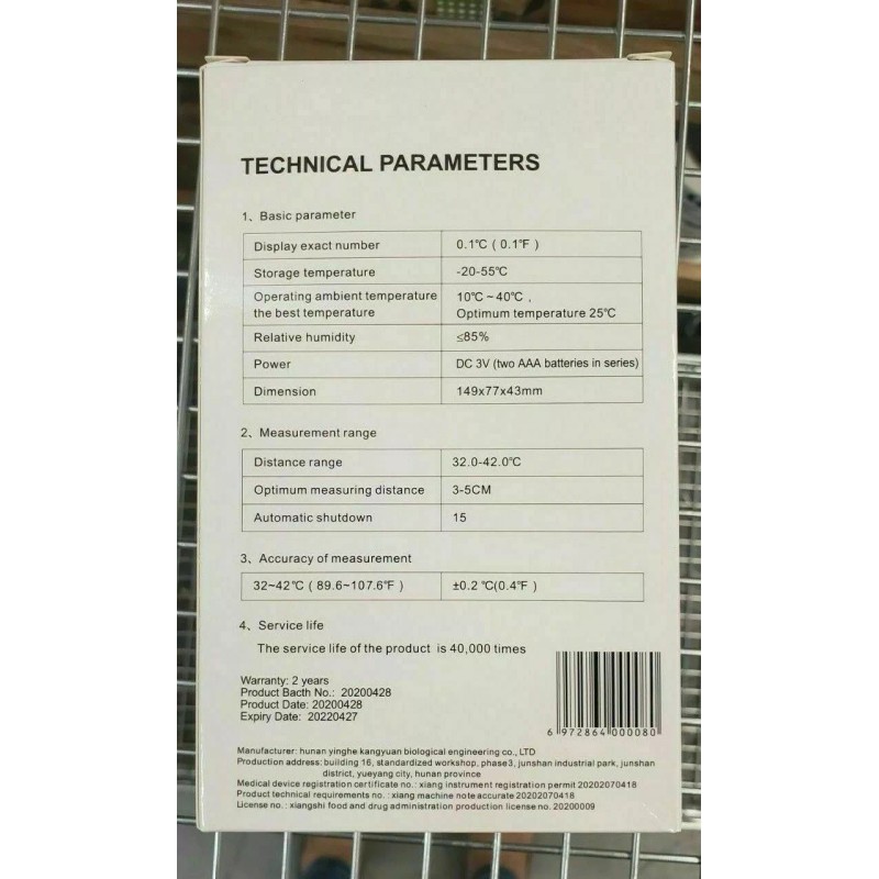 One [1] Non Contact Infrared ThermometerBrand: | YHKY-2000 Thermometer |