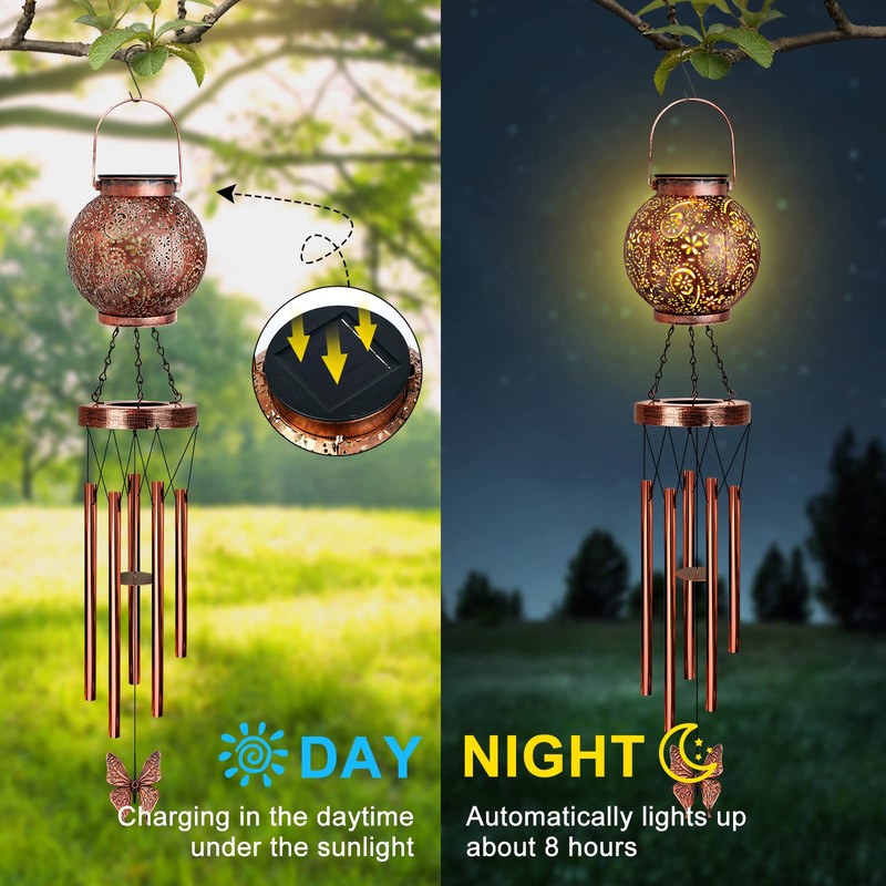 - Design: Our wind chimes for outside are automatically charged during the day and automatically lit at night; make sure switch to "ON" position before charging and hang the butterfly solar lantern on the place where can be illuminated by the sun