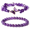 YHNMMNO 2 Sets Amethyst Beads Bracelet Women's Healing Stone Bracelet Butterfly Shape Gemstones Bracelets Balls Chip Bracelet Elastic Bracelets Gift for Women