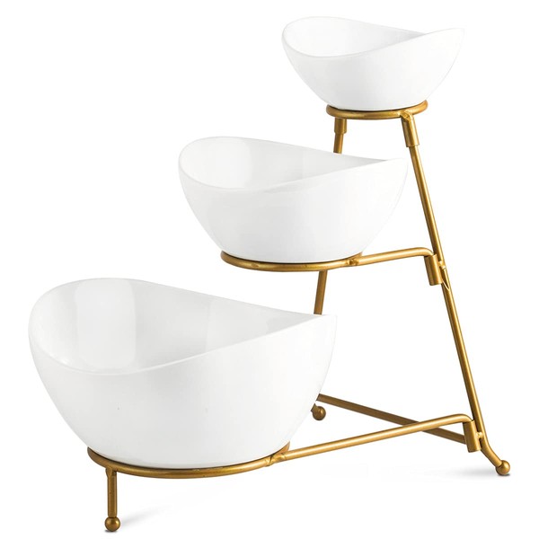 YHOSSEUN YHOSSEUN 3 Tier Serving Stand Oval Serving Bowl with Metal Rack, Tied Serving Bowls Food Display Dessert Appetizer, Serving Bowl Fruit Chip Dip Bowl Set for Parties, Gold
