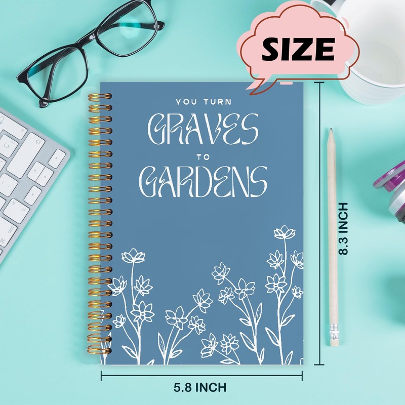 Yhtrg Blue Floral Christian Notebooks, Christian Gift Notebook for Women, You Turn Graves into Gardens Bible Journaling Notebook, Bible Scripture Journals for Writing, 5.5x8.3 Inch