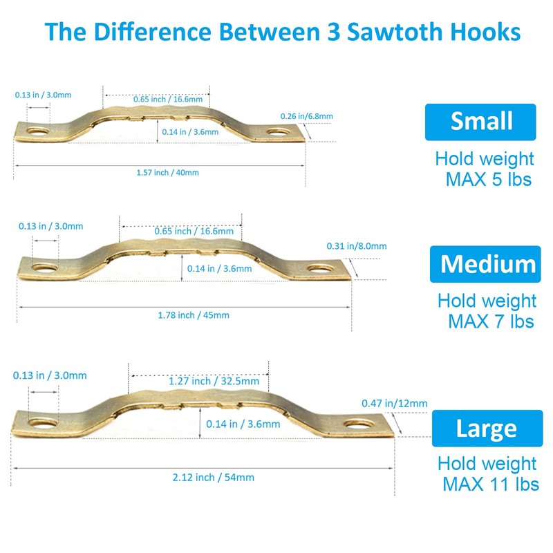 - 【Service】 ---We are commintted to providing the high quality service and product. If you were not satisfied with our sawtooth picture frame hooks(includes the screws), or any questions with quality, we are willing to refund all of your payment without returning back the items. Just contact us.