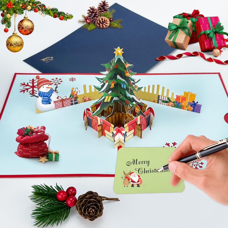 - ☃️PERSONALISED INFORMATION Each of our 3D Christmas pop-up card contains a blank notecard to insert on which you can write your personal Christmas greetings. Write down your heartfelt wishes or doodle as you like to make your Christmas message even more special.
