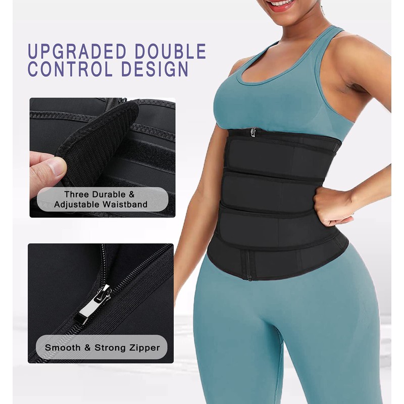 - ✅【Double Adjustable Straps Design】 - The abdomen double-layer compression design and wide design is wider than generic items, more area covered, more sweat comes, makes the abdomen effect more obvious. Three Belt + zipper combination design, and sticky adhesive. Easy to adjust the size. Built-in 9 STEEL BONES, support shaping effect is powerful and effective. Give you a perfect waist trimmer + waist trainer. it gets you a completely different feeling compared with others.