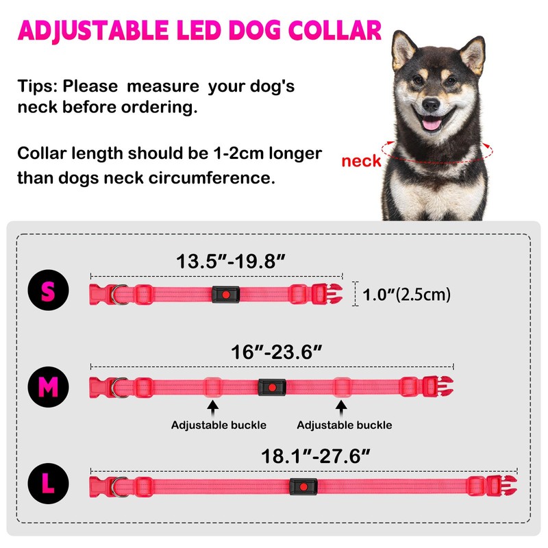 • Super bright for LED dog collar: This light collar dog provides bright, eye-catching lighting so that your puppy remains visible even at night or in low light conditions - no more worrying about the safety of the dog.