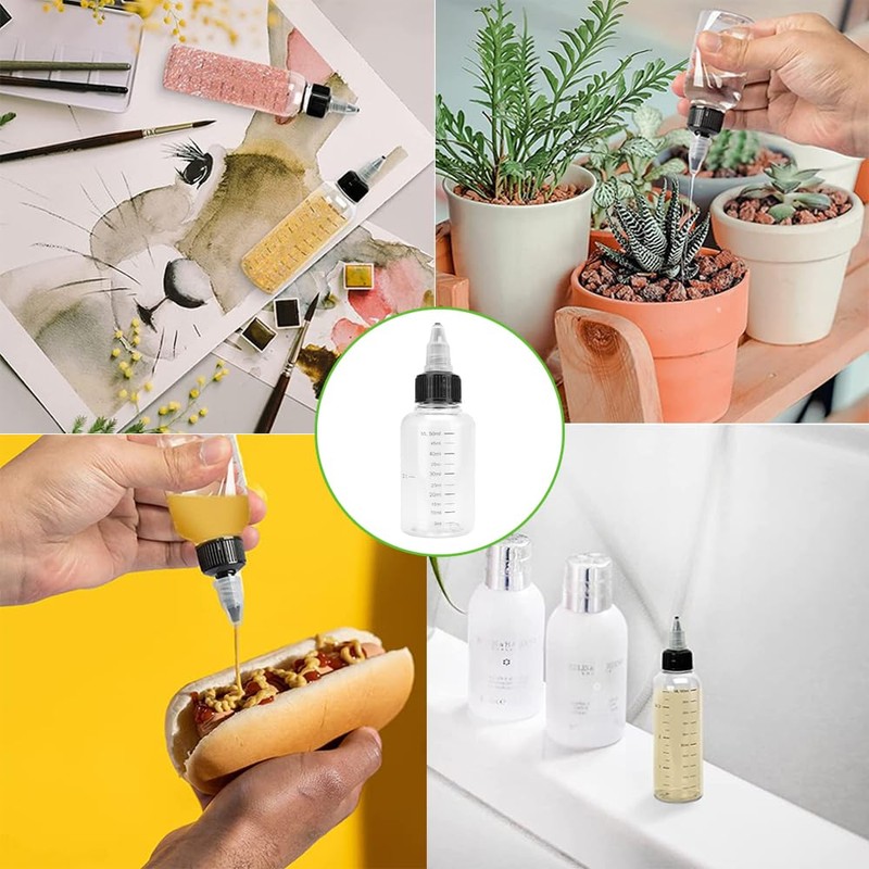 - 【Graduations】 The surface of the bottle is marked at 0.4 fl oz (10 ml) for convenient operation while checking the amount of filling. Transparent bottle body allows you to clearly see the color of liquid inside. If you need to check different colors of glue or paint, then this clear bottle is the best choice