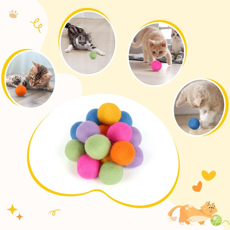 - Ideal gift for cat lovers: the handmade felt balls cat set is the ideal gift for cat lovers who value quality, sustainability and loving design. Whether on a birthday, on different holidays or just as a small note, these colourful cat toys self-employment bring any cat family with joy and business.