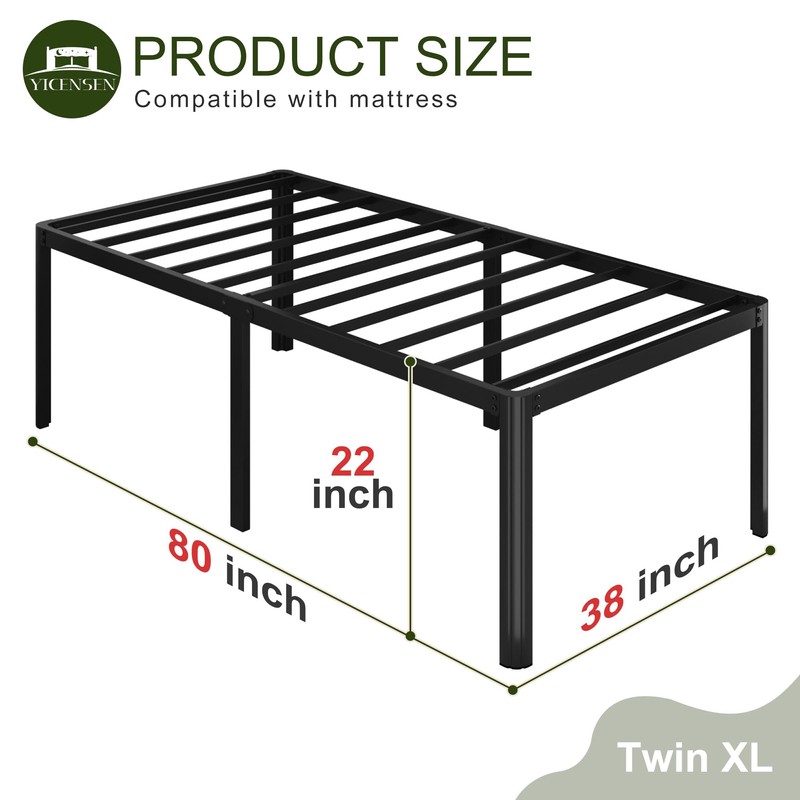 Yicensen 22 Inch High Twin XL Bed Frames with Rounded Corner Legs, Heavy Duty XL Twin Metal Platform Bed Frame No Box Spring Needed, Easy Assembly, Noise Free, Black