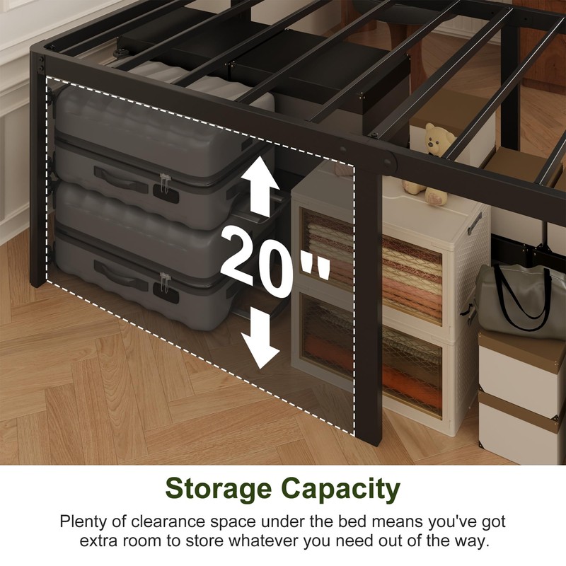 - High Bed Frame with Storage Space: Our bed frames have ample storage space underneath, which can be arranged to suit your needs, store extra items, and be easy to clean.