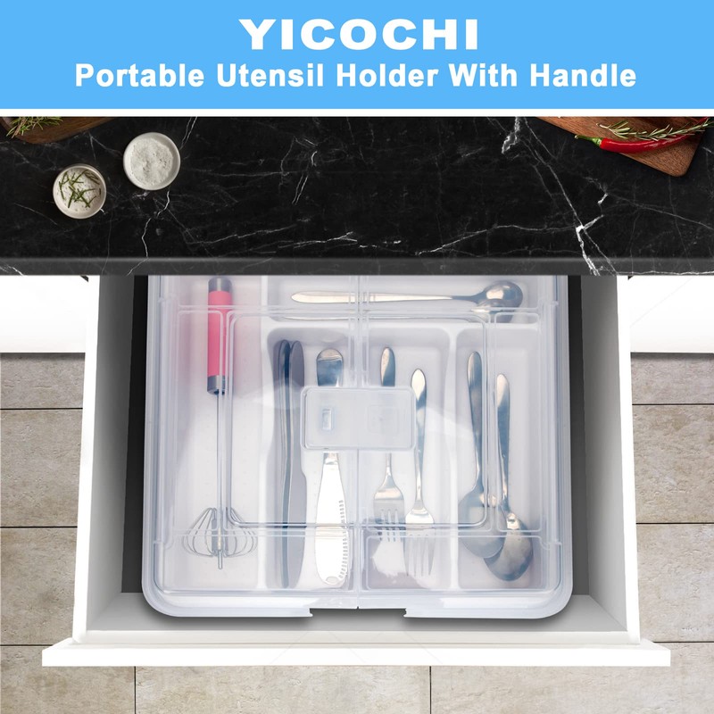 - Dusty-Proof: With the transparent lid, YICOCHI utensil holder is dust-proof to keep your silverware clean while put them in the countertop and drawer.
