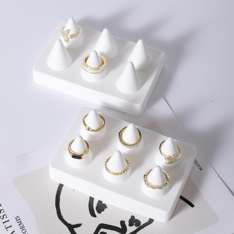 Yiemoge Cone Shape Gypsum Jewelry Ring Display Holder, White Finger Ring Stand Display Support Holder, Decorative Display Stands for Jewelry Ring, Necklace, Bracelet