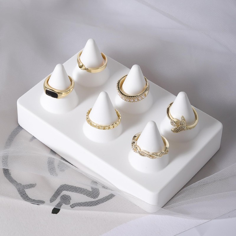 Yiemoge Cone Shape Gypsum Jewelry Ring Display Holder, White Finger Ring Stand Display Support Holder, Decorative Display Stands for Jewelry Ring, Necklace, Bracelet