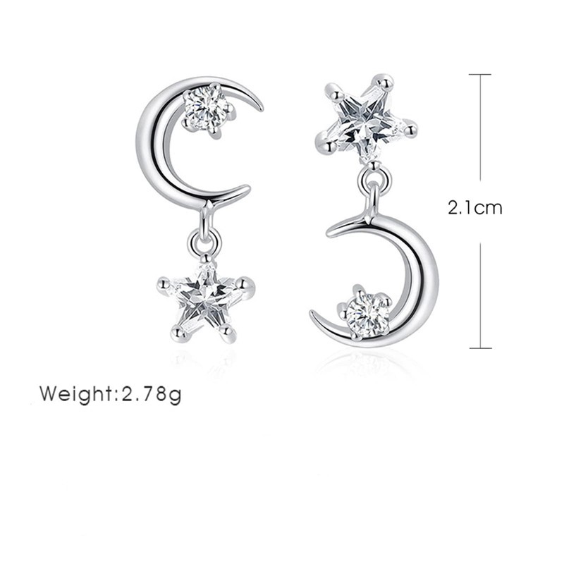 Yienate Crystal Star Moon Drop Earrings Silver Asymmetrical Tiny Crescent Sta...