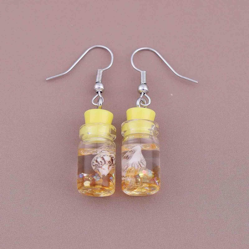 Yienate Instruction Drift Bottle Drop Dangle Earrings Unique Yellow Bottle Earrings Lightweight Resin Acrylic Drop Earrings Boho Beach Shell Earrings Jewellery for Women and Girls, Zinc, No Gemstone