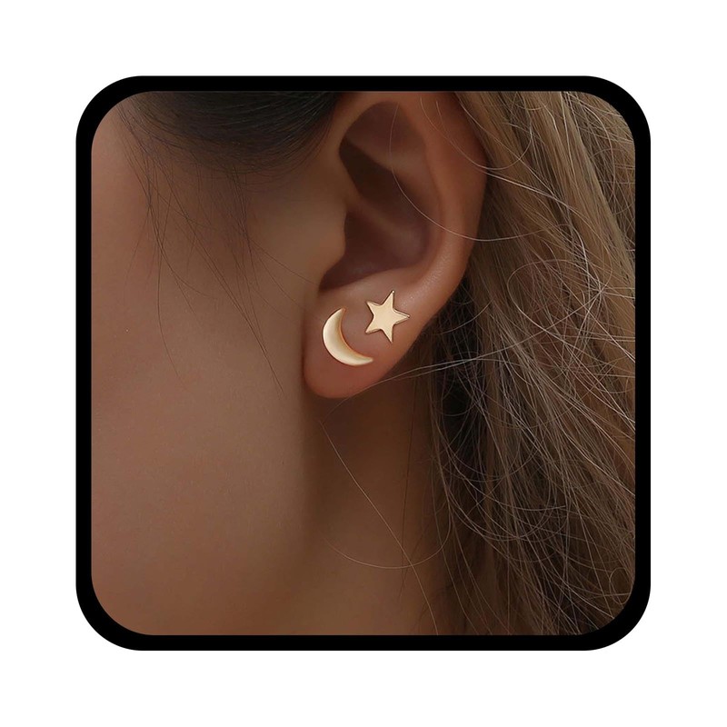 - Exquisite and simple: the star and moon earring series perfectly highlights the beauty of this earring jewellery by combining asymmetrical star and moon earrings.