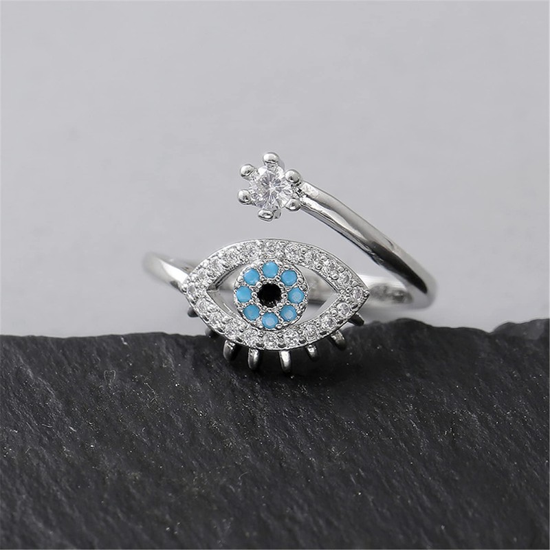 Yifnny Evil Eye Ring, Lucky Blue Evil Eye Ring Cubic Zirconia Adjustable Wrap Open Ring Eye Rings for Women (Silver)