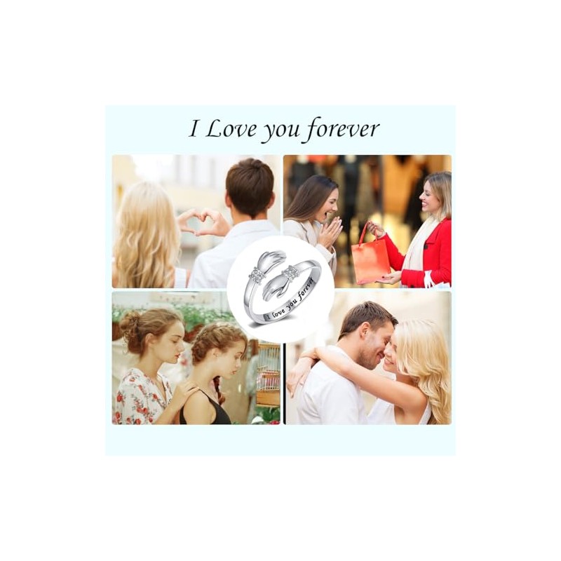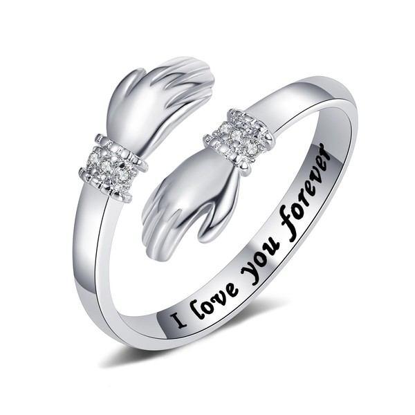 Yifnny Hug Ring, Engagement Ring, Engraved Words, Hug Hands, Open Ring, Adjustable Ring, Mother Gift for Men and Women, Jewellery, Metal, Cubic zirconia