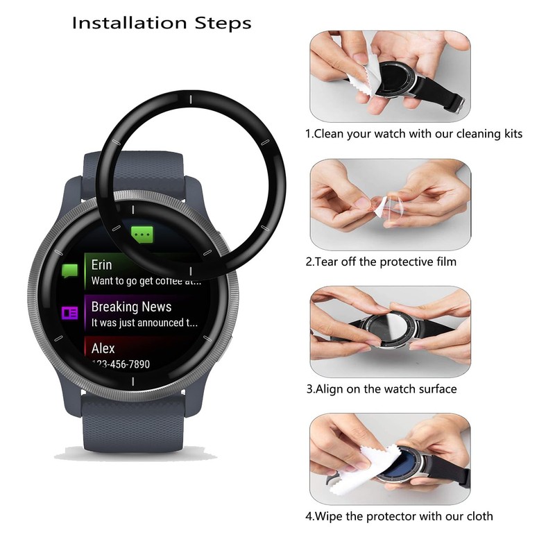- Compatible models: Applicable to Garmin Venu 2 smartwatch. Package contains 4 screen protectors and 4 accessories. Please check your smartwatch models before purchasing.