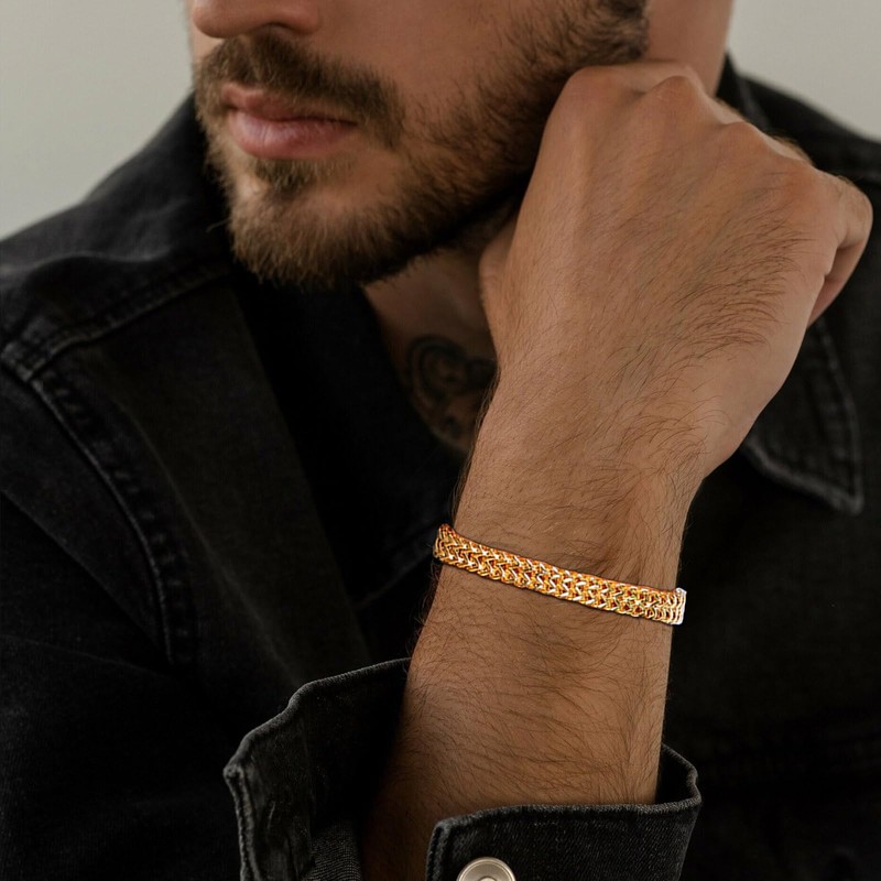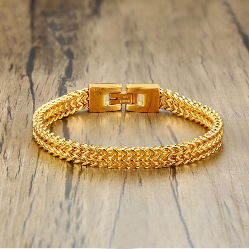 - Add style to your wrist with this men's bracelet. Our flat braided-cut beveled links give it a rich, perfect shine. This strong, durable chain will not bend or break and is meant for daily wear