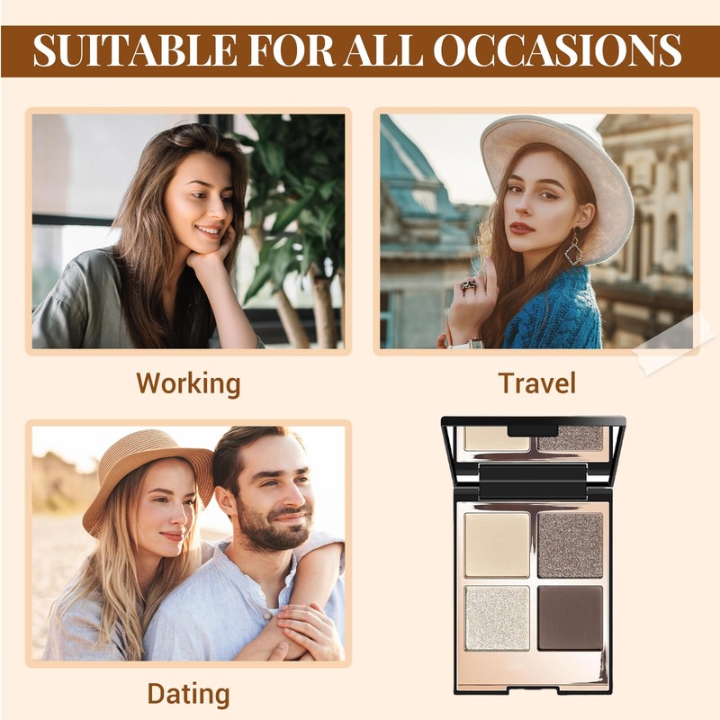 3.Waterproof & 12-Hour Wear:Our long-lasting, smudge-proof formula locks in vibrant color all day. Sweat-resistant and humidity-tested for weddings, workouts, or tropical travel—no fading or muddying, even on mature eyelids.