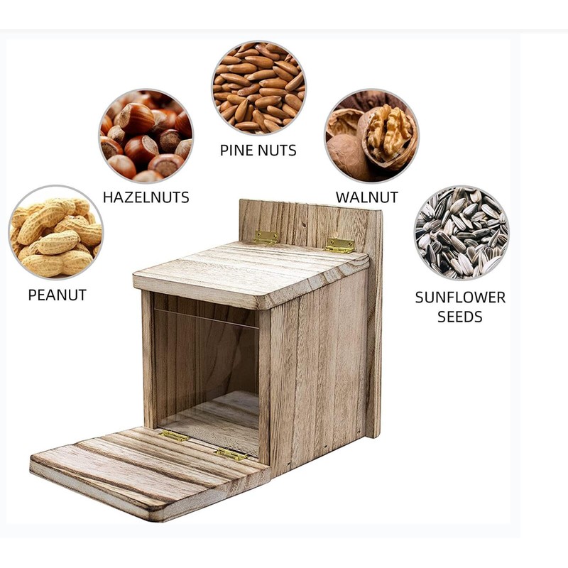 YIHAOBOX Squirrel Feeder Weatherproof - Sturdy Wooden Squirrel House with Squirrel Feeding Station Including Ventilation Holes, Squirrel Kobel for Standing, Flamed