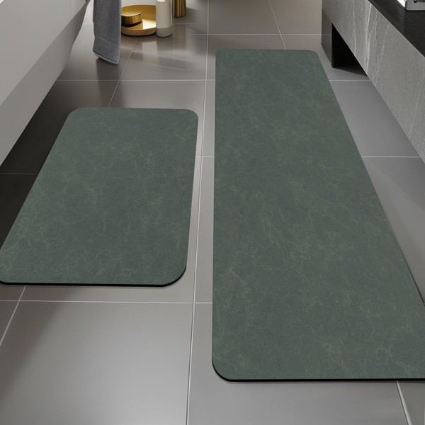 YIHOUSE Green Bath Mat Rug Sets 2 Piece,Thin Bathroom Rugs Fit Non Slip Bathroom Mat Quick Dry, Absorbent Rubber Bath Mats for Bathroom Floor,Shower