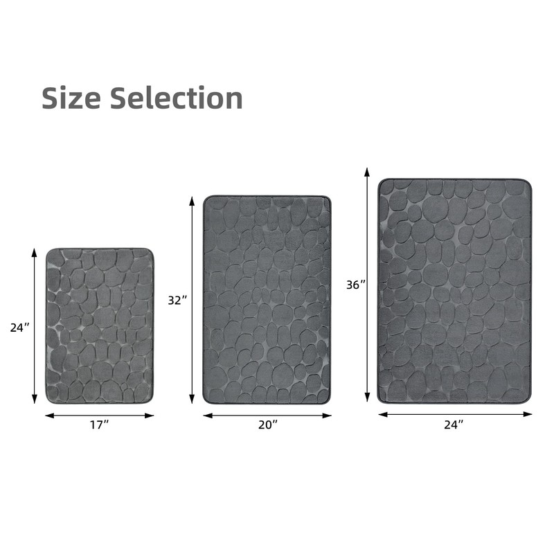 YIHOUSE Memory Foam Bath Mat Cobblestone Bathroom Rug Non Slip Washable Bathroom Mats Super Absorbent Bathroom Floor Mats(24"x36",Dark Grey)