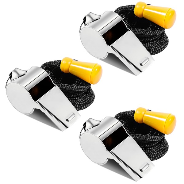 YIIFELL Whistle Set of 3 Stainless Steel Referee Whistle with Cord, Whistle with Big Voice for Sports, Games, Outdoor Life